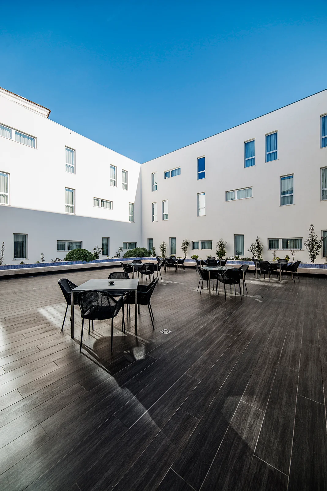 A hotel that develops around a surprising inner courtyard, it grows over three floors, with a total of 80 rooms and its exterior appearance integrates it with the architectural language and surroundings of the historic city centre.